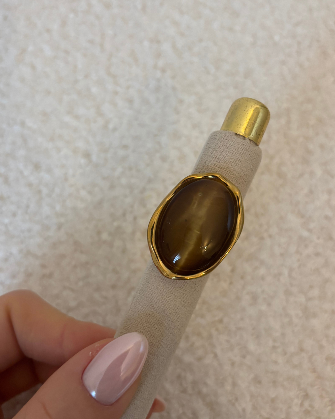 De Chunky ring brown is een opvallende statement ring met een bruine steen. De ring is verstelbaar en aan te passen naar de gewenste grootte.