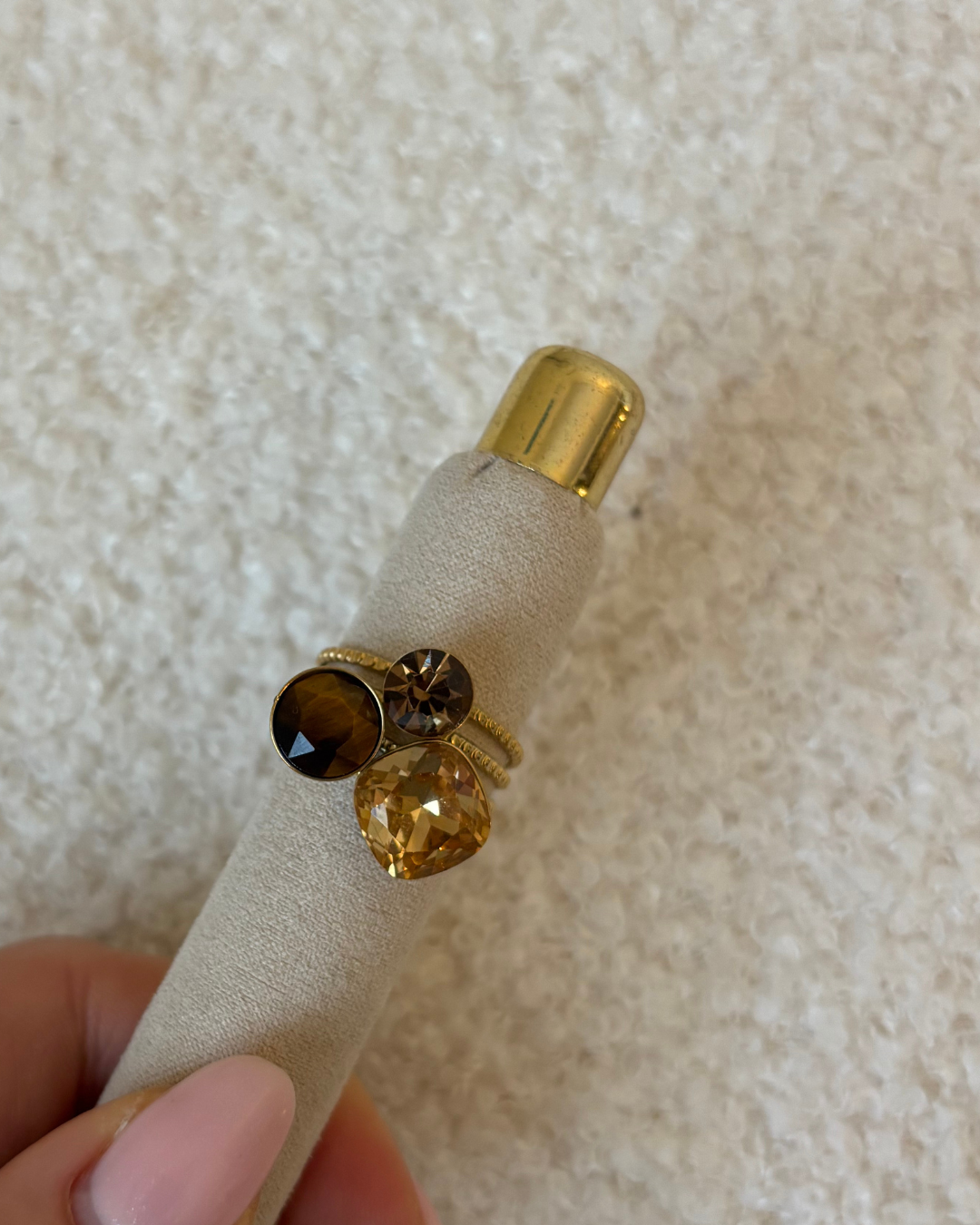 De Mocha glow ring is een opvallende statement ring met bruine stenen, een echte eyecather!