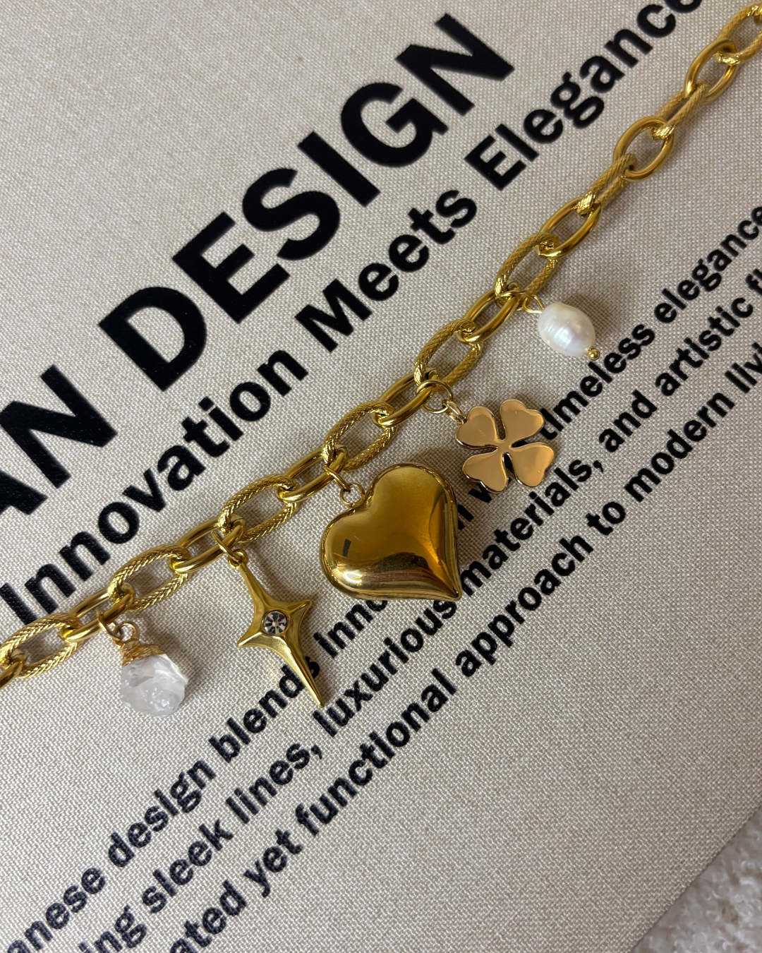 De Stardust charm necklace is een bedelketting met 5 bedels en een grove chain.